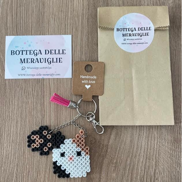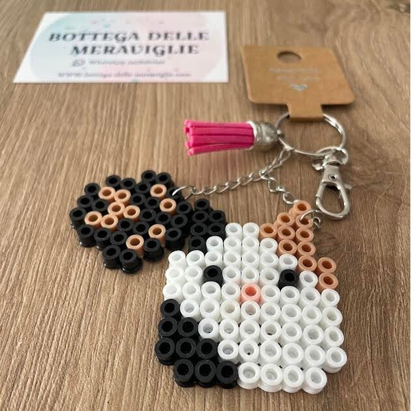 Portachiavi Gatto e impronta realizzata con perline